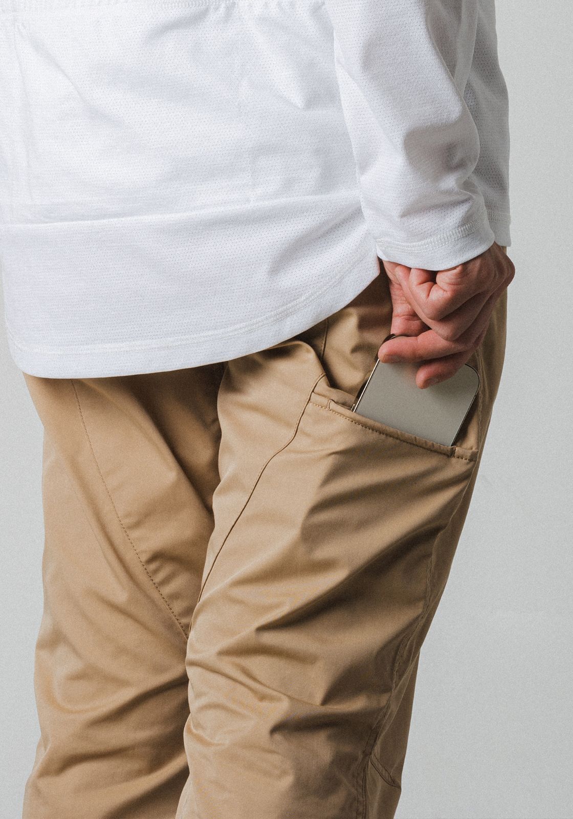 narifuriの定番バイクパンツが新しくなりました。生地は新たに吸水速乾性・通気性・ストレッチ性・イージーケア性に優れた「COOLMAX®」ライクラツイルを使用。速乾性に優れたメッシュポケット、スマホ収納に最適なPhoneポケット、快適なペダリングを可能にする膝ダーツなどのディティールはそのままに。ヒップパッドの中綿を抜き、前傾時に腹部にストレスを与えないオリジナルバックルを新たにデザインしました。今まで以上に乾きやすく、風を通し、動きやすく、カジュアルウェアとの相性が良いシティライドの新定番です。